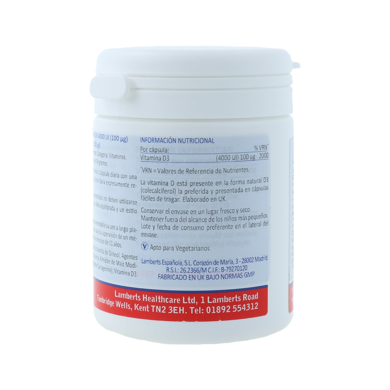 Lamberts Vitamin D3 4000 Ui 100µg 120comp est un complément alimentaire à base de vitamine D3 qui aide à maintenir un bon système immunitaire, ainsi qu'une bonne santé osseuse et une bonne fonction musculaire