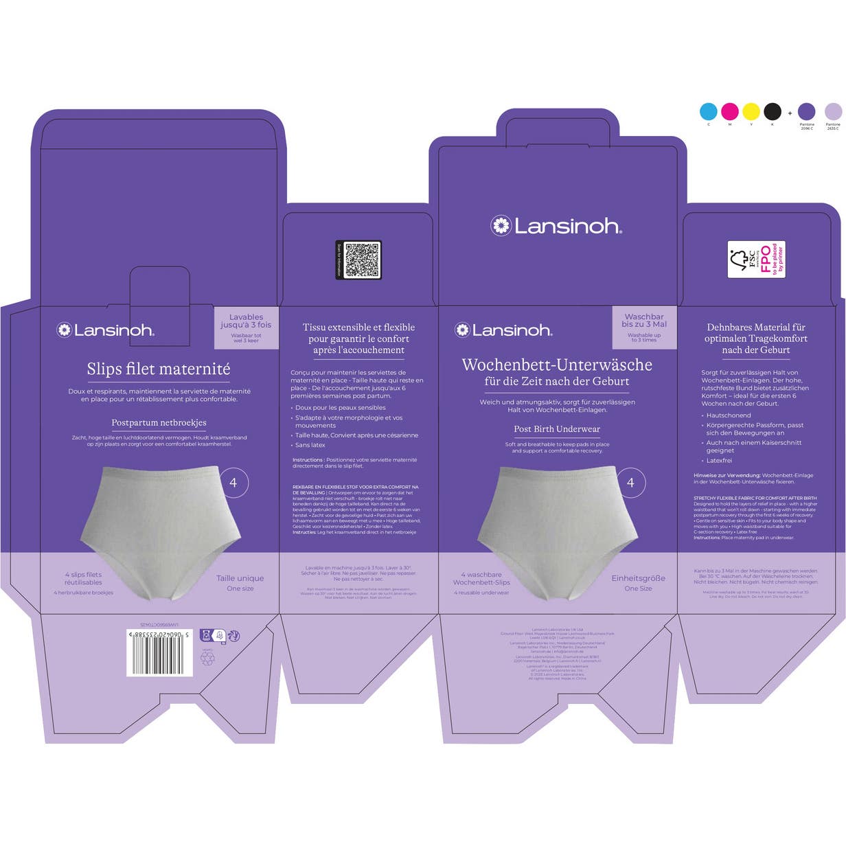Bragas de Malla Maternidad Lavables Lansinoh 4 uds son una solución ideal para el confort durante el periodo postparto. Estas bragas están fabricadas con microfibra suave y elástica, lo que permite una adaptación perfecta al cuerpo sin generar compresión, incluso después de una cesárea.