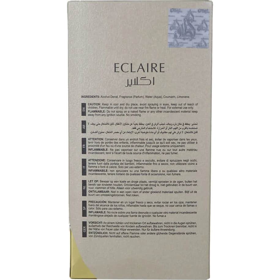 Lattafa Eclaire Eau de Parfum 100 ml est une fragrance gourmande unisexe au parfum doux et crémeux, conçue pour se démarquer avec élégance lors de différentes occasions. Elle offre un profil oriental chaud et une durée prolongée.