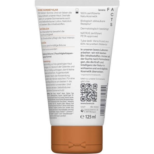 Lavera Lotion Autobronzante 125 ml est un produit conçu pour fournir un bronzage naturel, uniforme et durable, sans avoir besoin de s'exposer au soleil. Sa formule légère s'absorbe rapidement, laissant la peau hydratée et nourrie.
