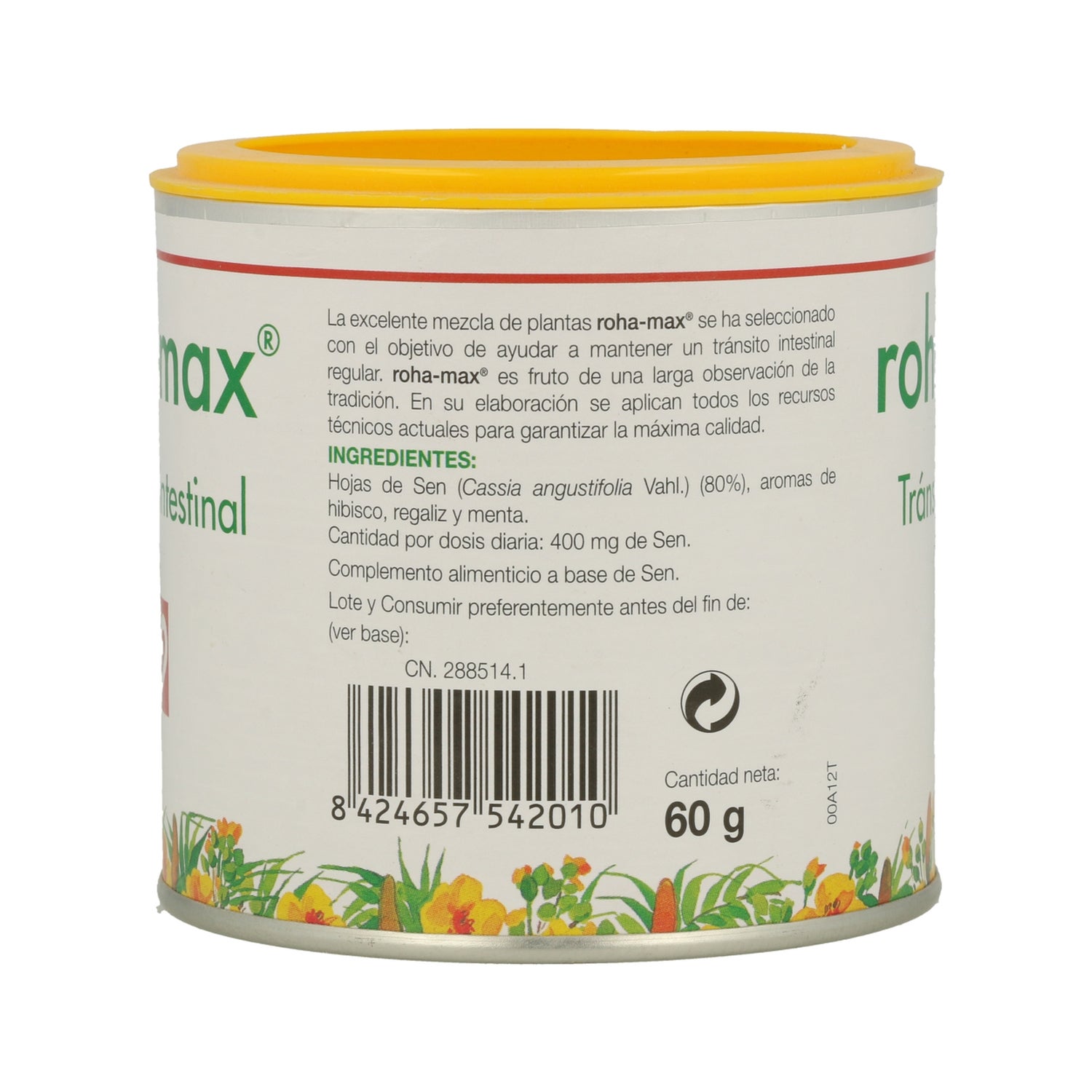 Roha-Max® Laxative 60g est un complément alimentaire qui offre un excellent mélange de plantes roha-max sélectionnées pour aider à maintenir un transit intestinal régulier.