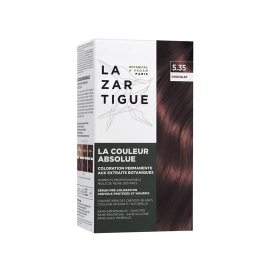 5.35 teinture pour cheveux de couleur chocolat. Doté d'une formule enrichie en lait de riz et en huile de reine des prés, il est associé à un sérum précolorant et à un masque exclusif pour une fibre protégée et intensément nourrie avant, pendant et après la coloration.