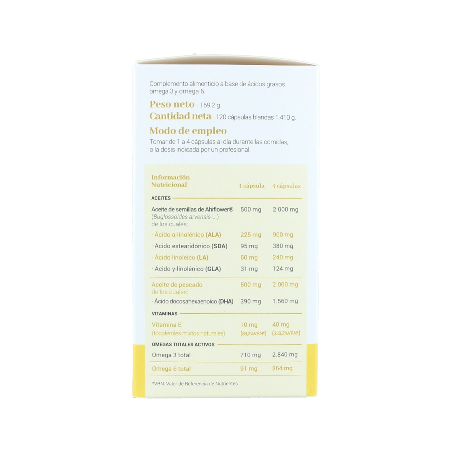 Il s'agit d'un complément alimentaire qui fournit de grandes quantités d'acides gras essentiels indispensables au maintien d'une bonne santé dans tout le corps. Les acides gras oméga 3 (ALA et DHA) et oméga 6 (LA et GLA) sont des micronutriments de base qui doivent être apportés par l'alimentation. Le choix du type, de la source et de la quantité de chaque oméga dans ses formes appropriées est très important pour maintenir l'équilibre oméga 3 - oméga 6. L'équilibre des omégas dans l'organisme est essentiel pour le fonctionnement optimal des processus vitaux. Omega Base fournit une teneur élevée et équilibrée en acides gras polyinsaturés oméga 3 et oméga 6, dans une combinaison et une proportion qui permettent d'obtenir l'activité biologique la plus élevée.