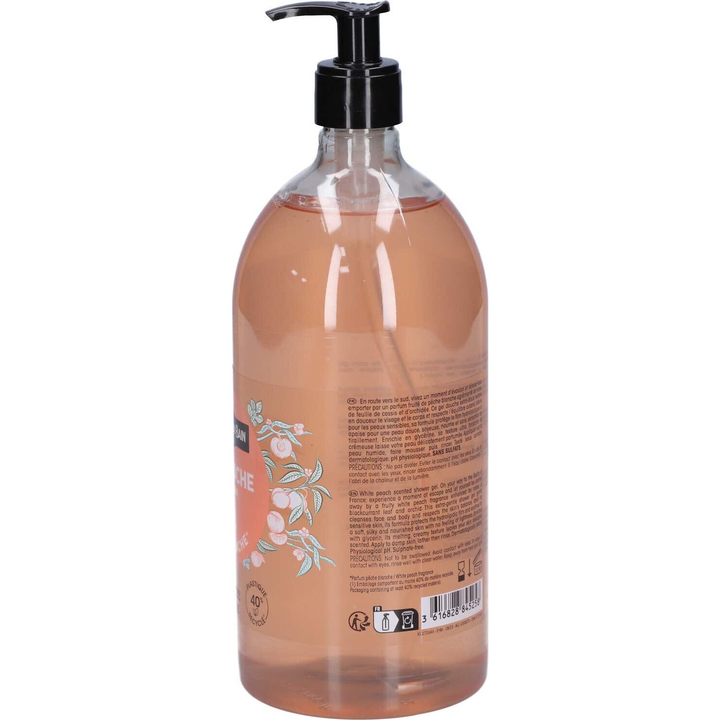 Le Comptoir du Bain Gel Douche Pêche Blanche 1L est un produit conçu pour offrir un nettoyage doux et efficace de la peau, sans provoquer d'irritation. Sa formule combine :