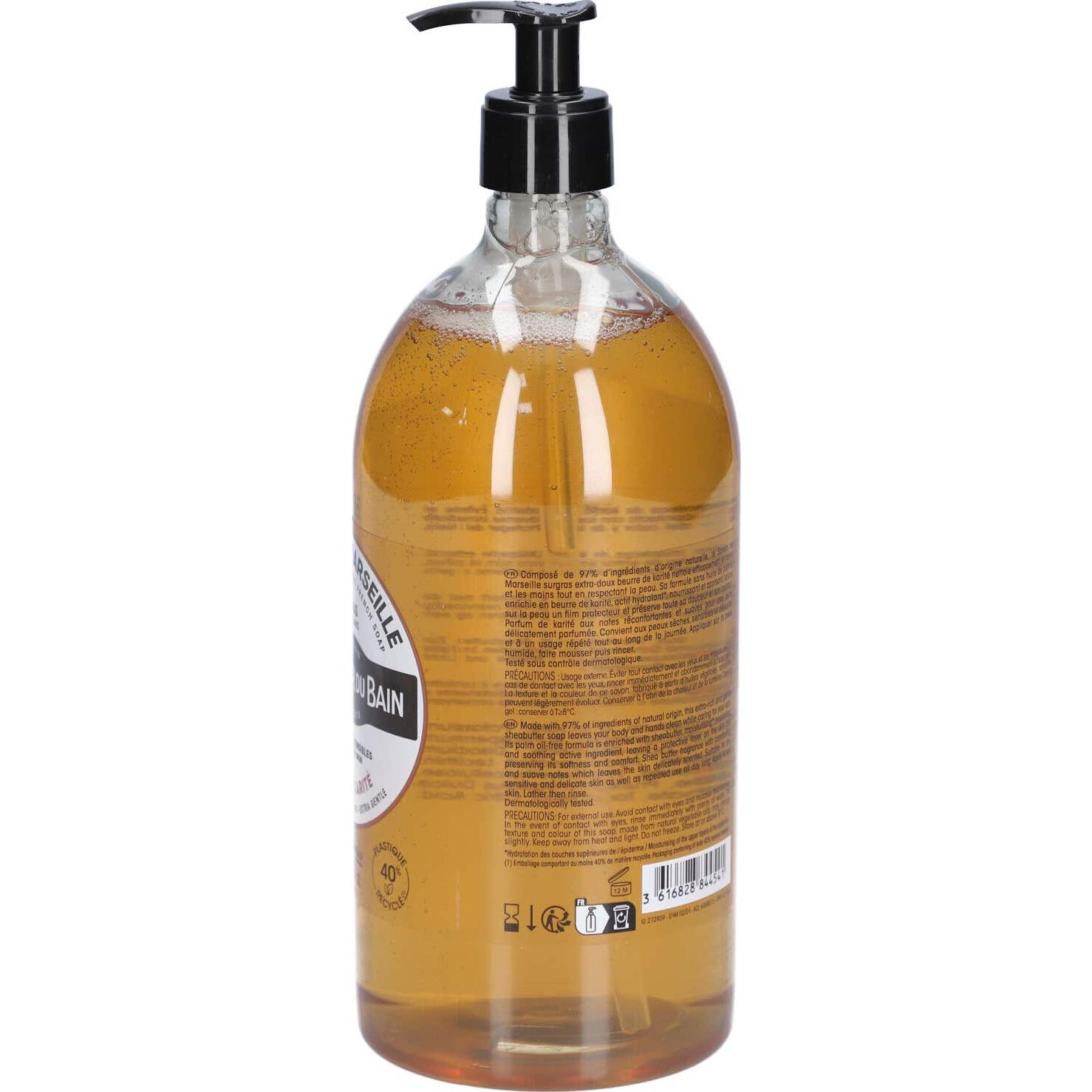 De plus, la formule est enrichie en huile d'amande douce, qui renforce les propriétés du karité, contribuant à ce que la peau se sente plus douce et soignée. Le flacon de 1 litre, avec un distributeur pratique, permet une utilisation quotidienne tant comme gel douche que comme savon pour les mains, faisant de ce produit une option économique et polyvalente.