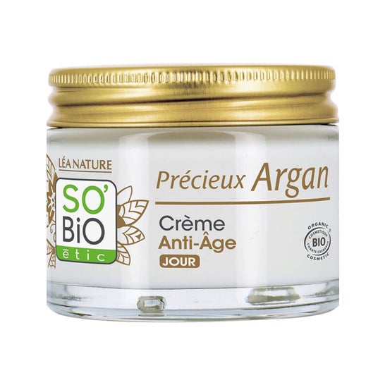 Crème de jour de traitement anti-rides avec une texture crémeuse et nutritive et un agréable parfum floral, convient à tous les types de peau et est enrichie en huile d'argan et acide hyaluronique.