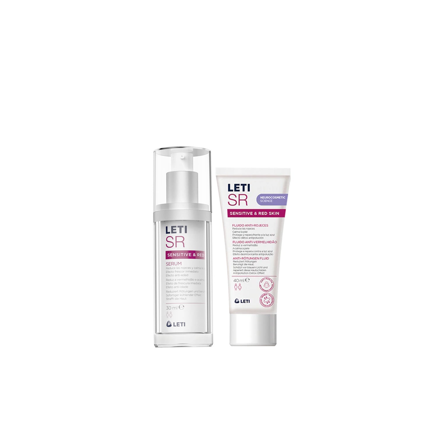 Leti Sr Sérum Antirougeurs 30ml + Fluide Antirougeurs 40ml est un ensemble conçu pour le soin de la peau sensible qui présente des rougeurs. Ce pack comprend un sérum et un fluide, tous deux formulés pour apporter un soulagement et un confort à la peau.
