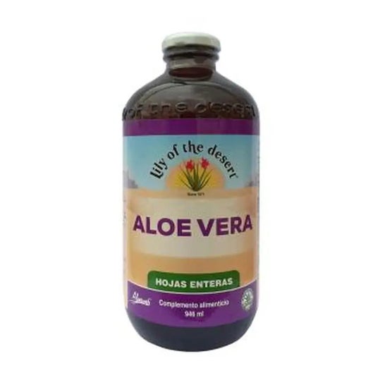 Lily Of The Desert Aloe Vera Whole Leaf Glass 946ml est un complément alimentaire fabriqué à partir des feuilles entières d'aloe vera et contient des polysaccharides et des acides organiques, tels que l'acide malique.