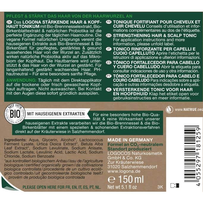 La composition de Logona Tonique Fortifiant inclut des ingrédients tels que :