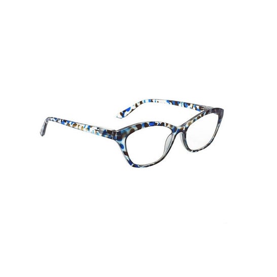 Lunettes de presbytie pour femmes avec des verres pré-gradés et un motif chiné dans les tons de brun et de bleu. Le design compact est très durable et confortable grâce au cadre en polycarbonate. La forme ovale s'adapte à presque toutes les formes de visage. Ces lunettes sont parfaites pour la fatigue oculaire. Gradué pour 2 dioptries.