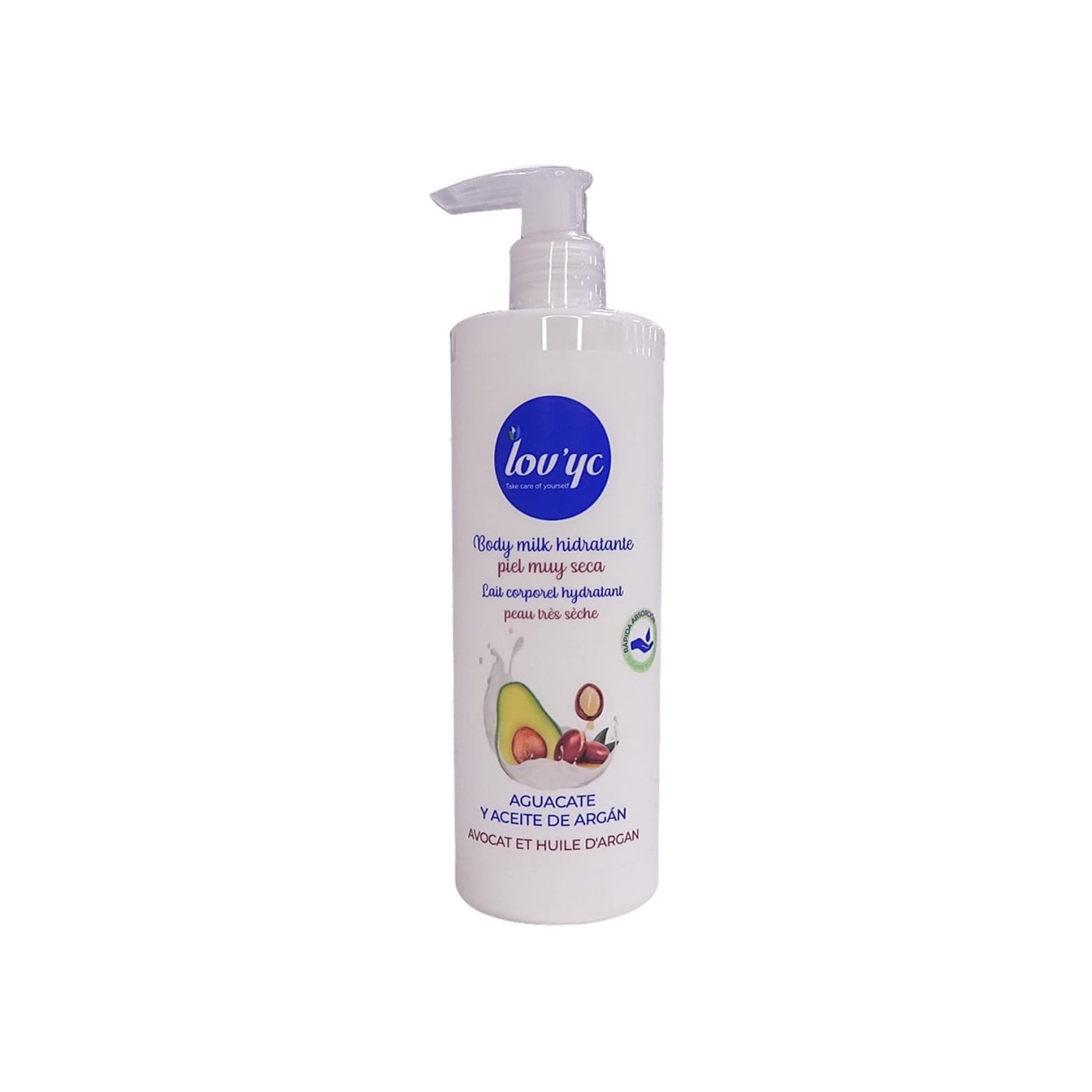 Lovyc Body Milk Hydratant Avocat Argan Peau Très Sèche 400ml est un lait hydratant avec une texture liquide qui facilite son application et est conçu pour fournir une hydratation intense à la peau.