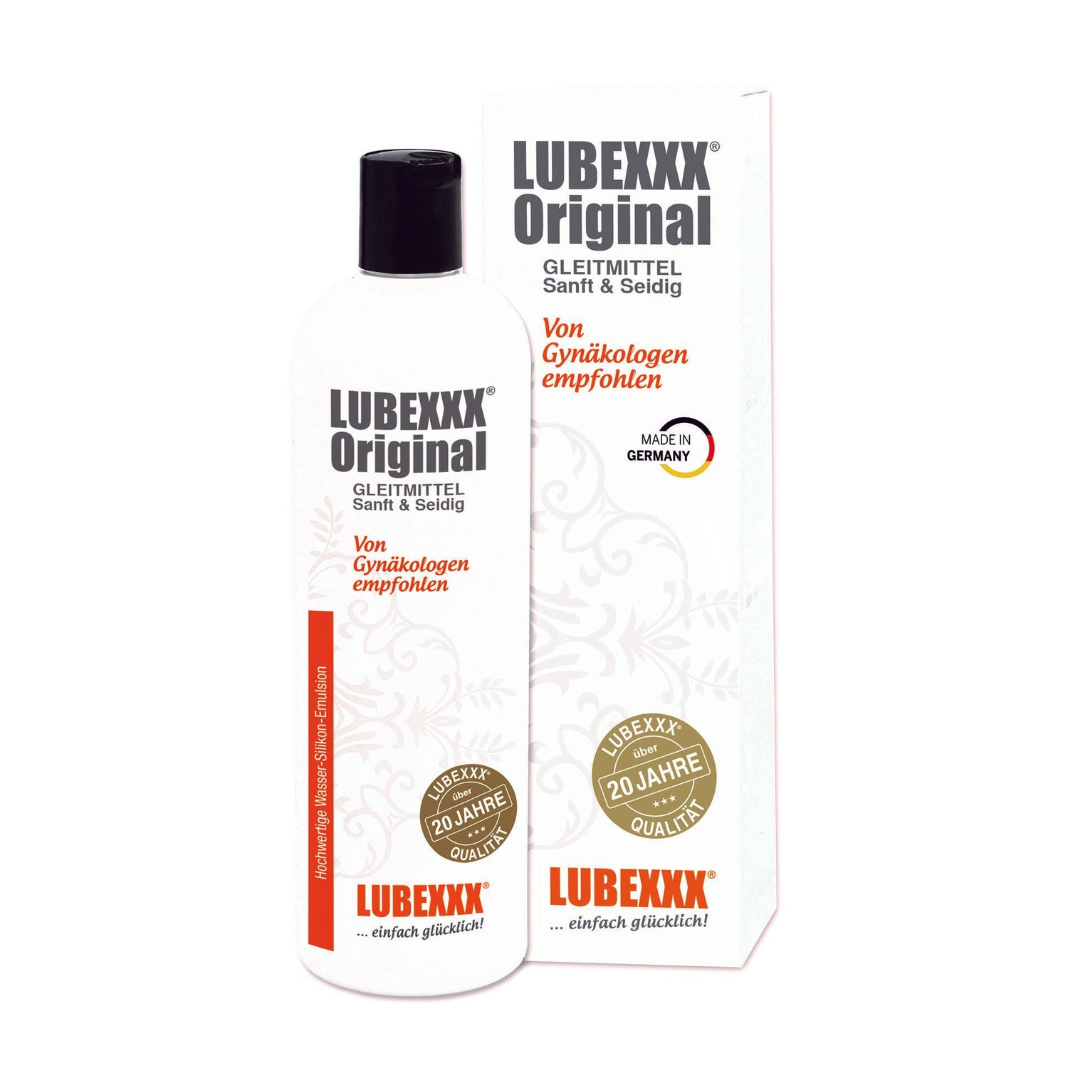 Lubrifiant LUBEXXX® Original - recommandé par les gynécologues. LUBEXXX® Original est un lubrifiant de haute qualité, recommandé par les gynécologues, au toucher agréable et soyeux. Il est utilisé lorsqu'un effet de glissement supplémentaire est souhaité. LUBEXXX® Original est un lubrifiant disponible en pharmacie à base d'une émulsion spéciale eau-silicone (formulation 2 en 1) et combine ainsi tous les avantages qu'un lubrifiant devrait avoir. Propriétés glissantes, durables, solubles dans l'eau et non collantes.