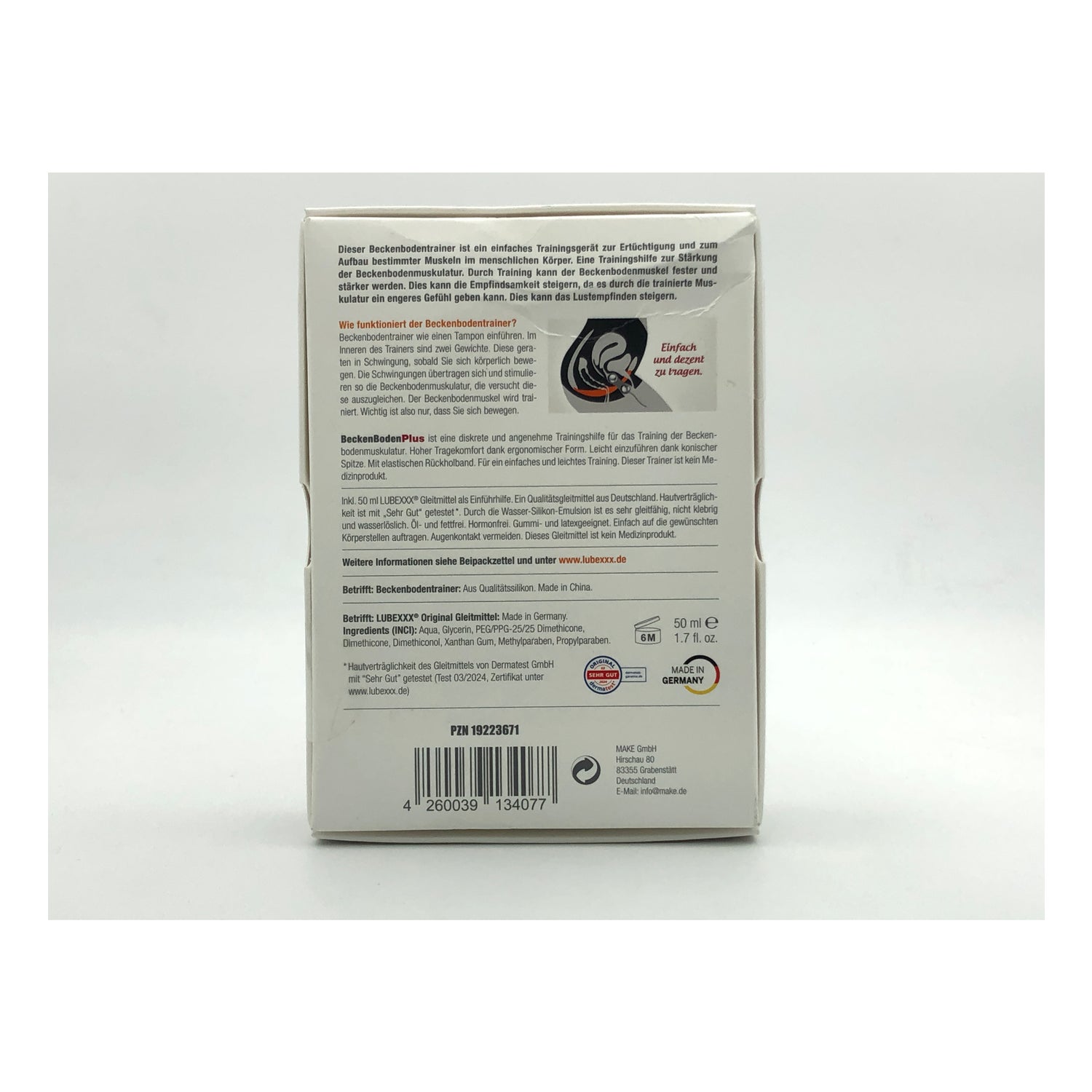 Comprend 50 ml de lubrifiant LUBEXXX Original.Pourquoi faire des exercices du plancher pelvien ? Imaginez votre plancher pelvien comme un hamac. Les muscles et les ligaments maintiennent les organes tels que l'utérus, la vessie, le vagin et les intestins de manière élastique et stable dans ce "hamac". Si la tension est relâchée, le "hamac" peut glisser vers le bas.