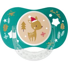Sucette avec le dessin d'un oiseau turquoise spécialement conçue pour répondre aux besoins de succion des bébés de 0 à 2 mois afin de les apaiser et de les calmer. Possède une tétine anatomique en silicone qui s'adapte au palais du bébé et respecte le développement des gencives et des dents.
