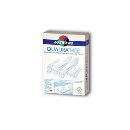Le M-Aid Quadra Cer est disponible en paquets de 40 unités et est indiqué pour favoriser la cicatrisation des blessures superficielles, garantissant protection et confort.