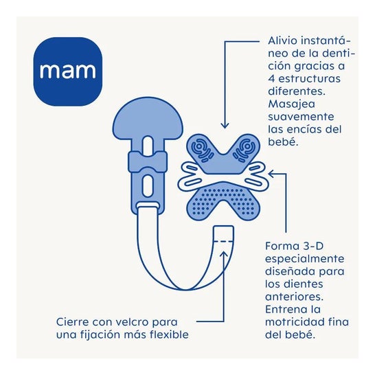 Si vous cherchez un mordeur pour votre bébé, faites confiance à la gamme de morsures de MAM. Une marque spécialisée dans la santé de l'enfant avec une large gamme d'accessoires pour le développement de bébé. Dans ce cas, le mini Bite & Relax Phase 2 de MAM est spécialement conçu pour apaiser les gencives de bébé après l'apparition des premières dents. Un accessoire utile pour votre bébé qui soulage l'inconfort de la naissance des premières dents : une fois que vous l'aurez essayé, vous ne pourrez plus vous arrêter !