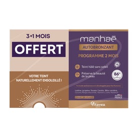 Un teint hâlé et sublimé toute l'année, une peau dorée et lumineuse, un bronzage sans trace, inutile d'attendre les beaux jours ! Manhaé Autobronzant est la solution complète pour favoriser une pigmentation naturelle de la peau, une peau nourrie et un teint hâlé et lumineux, même sans soleil.