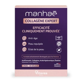 Manhaé Collagène Expert 30 Gélules est un complément anti‑âge premium qui cible l’éclat, la fermeté et l’hydratation de la peau.