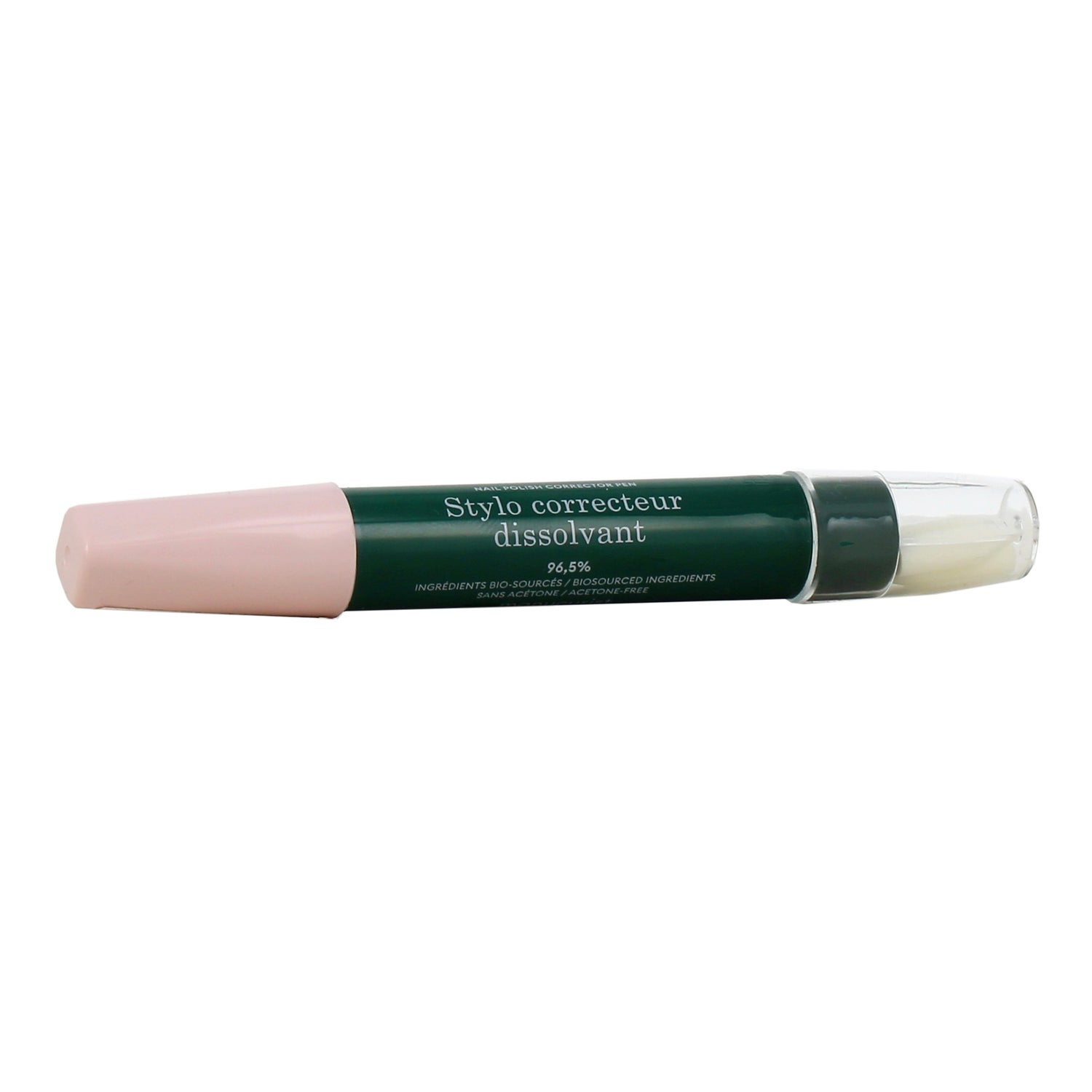 Le produit est le Manucurist Stylo Crayon Correcteur de 4 ml. Ce crayon correcteur dissout de manière précise et douce les imperfections lors de l'application des vernis semi-permanents Green Flash™ et des vernis à ongles Green™. Sa formule, qui est bio-sourcée et contient 97% d'ingrédients naturels, est enrichie en huile de ricin, ce qui permet d'éliminer les débordements tout en nourrissant l'ongle et son contour. Cela garantit que la manucure soit impeccable et que le contour de l'ongle soit bien défini.
