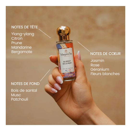 Margot & Tita Au Bout De La Nuit Eau de Parfum 30ml est une eau de parfum florale et enveloppante, mêlant la délicatesse de la rose et du jasmin à la profondeur du musc.