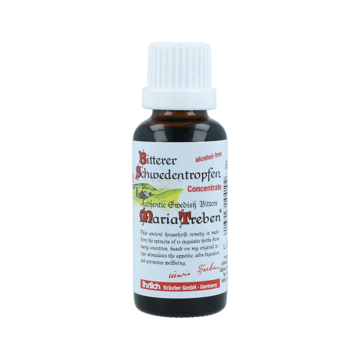 Extrait de plantes suédoises sans alcool. Alternative pour les enfants, ainsi que pour les personnes âgées, les intolérants à l'alcool et les abstinents, qui veulent expérimenter la formulation à base de plantes du "Swedish Bitters" selon la recette de Maria Treben. Formulé avec les principes actifs des plantes traditionnelles. Le concentré de 30 ml est utilisé pour fabriquer une teinture d'un volume de 0,7 litre avec de l'alcool de qualité alimentaire. Aide à améliorer le bien-être et à renforcer le corps.