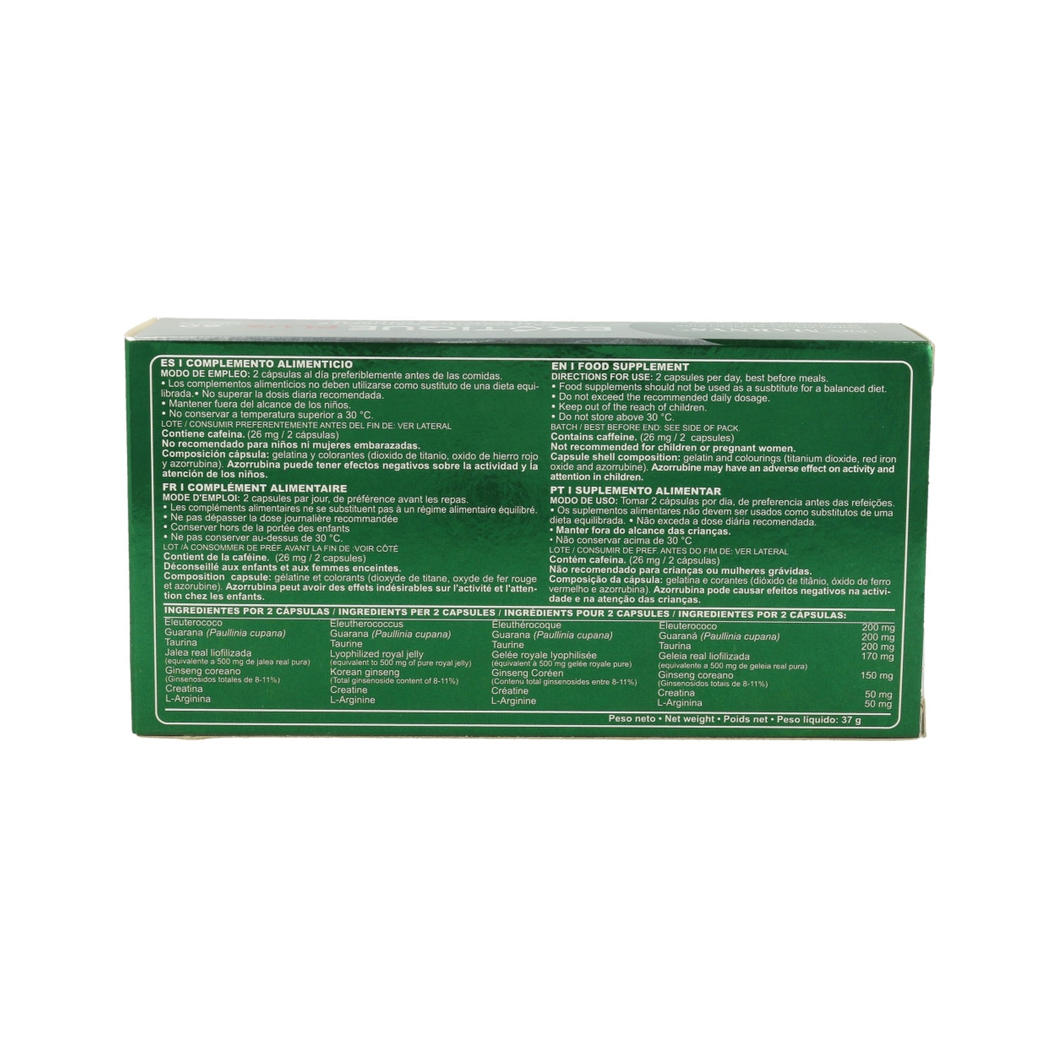Eleutherococcus, Guarana, Taurine, Gelée royale lyophilisée, Ginseng coréen, Créatine, L-Arginine.