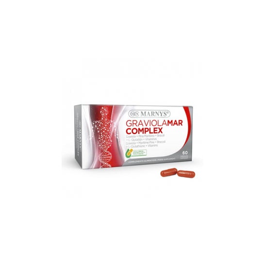 Concentré de poudre de fruit de graviola (Annona muricata), concentré de poudre d'écorce de pin (Pinus pinaster), concentré de poudre de brocoli (Brassica oleracea), L-Glutathion réduit, acétate d'α-tocophérol (vitamine E), chlorhydrate de pyridoxine (vitamine B6) et stéarate de magnésium.