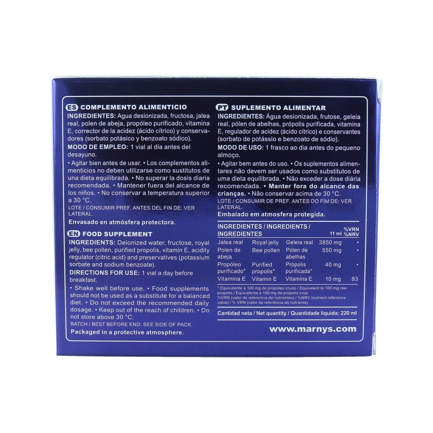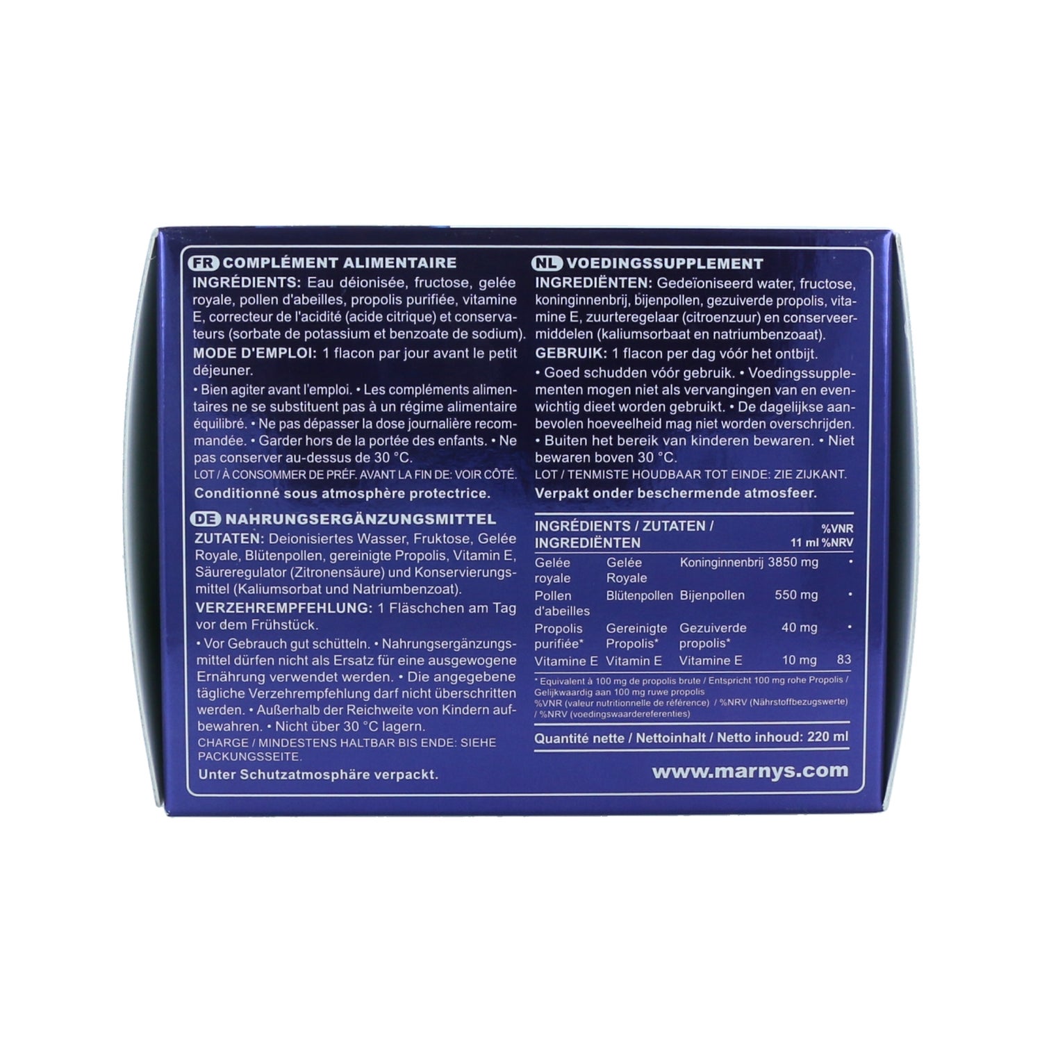 Marnys Royal Provite 5000 20 Flacons est un complément alimentaire à base de gelée royale, propolis, vitamine E et pollen.