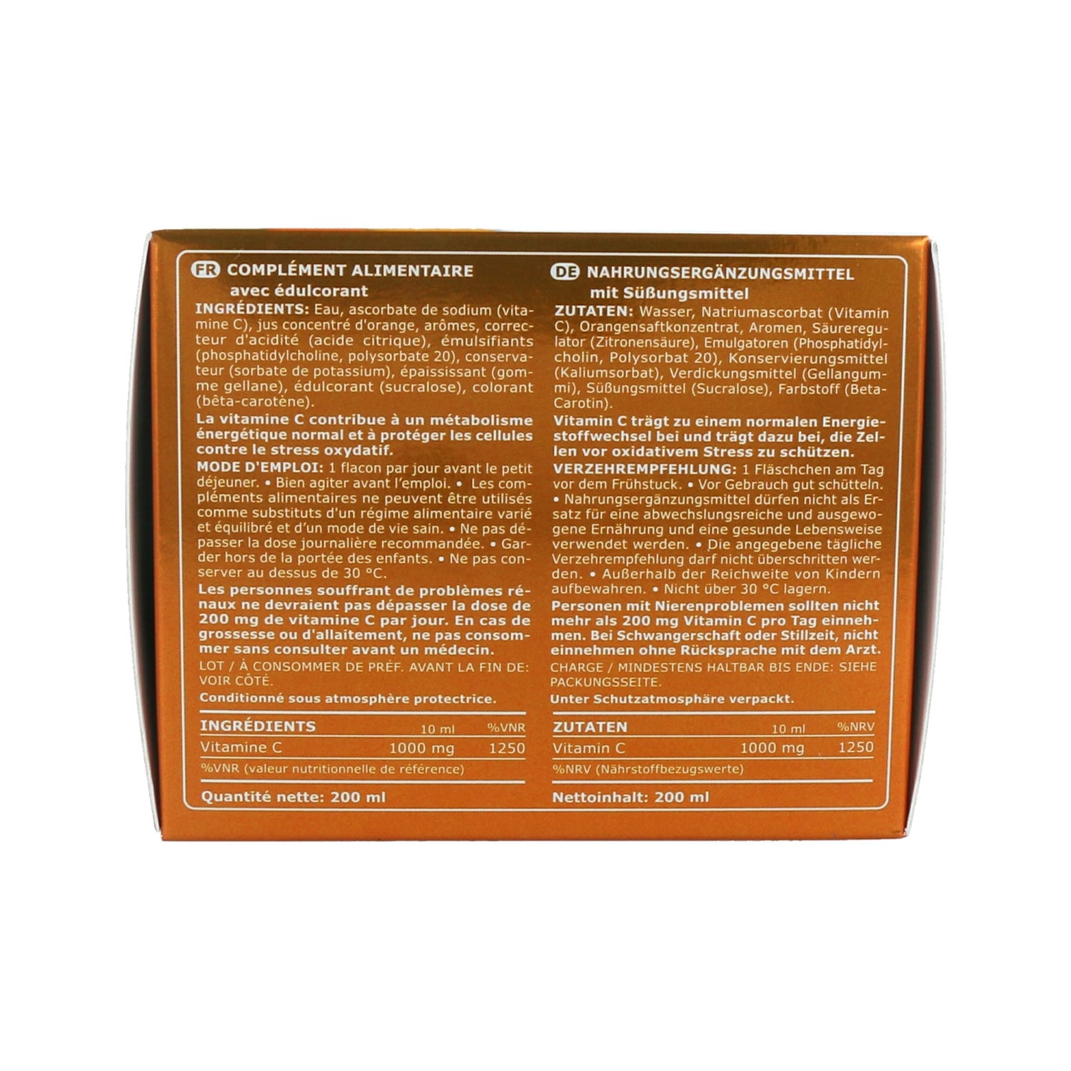 La vitamine C contribue également à un métabolisme énergétique normal et favorise la formation de collagène pour la peau, les os, les cartilages et les vaisseaux sanguins.