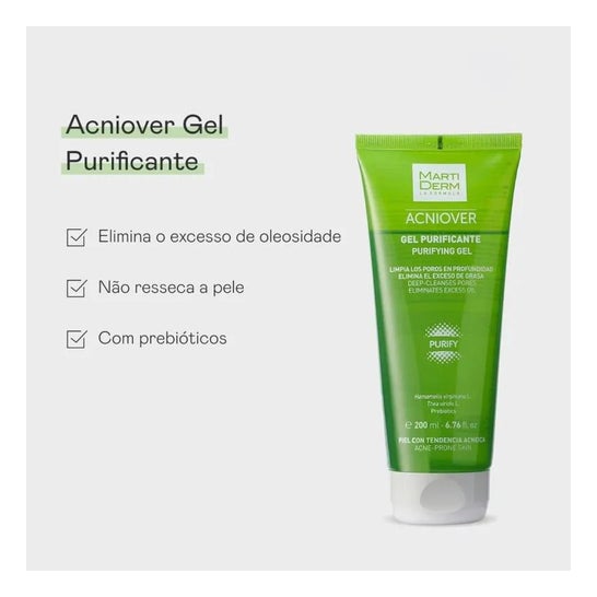 Martiderm® Acniover Gel Purifiant 200ml est un soin spécialement formulé pour aider à nettoyer les pores et éliminer l'excès de sébum.