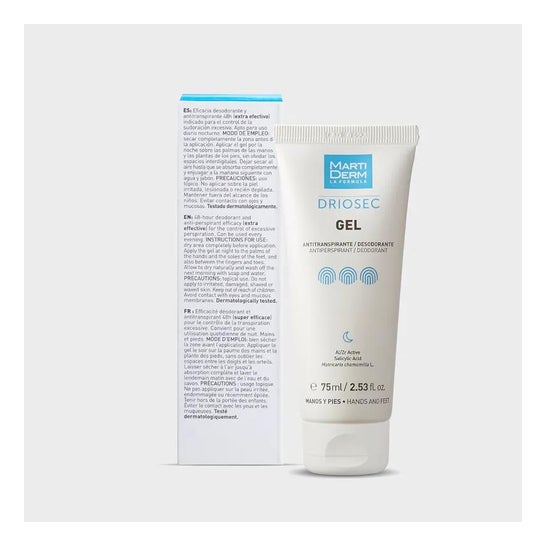 Le gel antisudorifique pour les mains et les pieds MARTIDERM® Driosec offre un contrôle de l'hyperhidrose des mains et des pieds, prévenant la transpiration excessive et améliorant le bien-être de votre peau. Grâce à son effet déodorant, il prévient la transpiration de votre peau et les mauvaises odeurs.