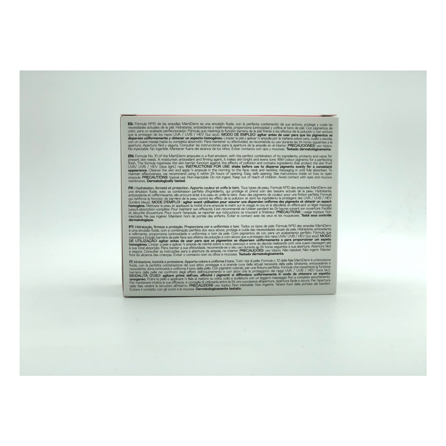 Des ampoules qui aident à traiter les rides et apportent à la peau des propriétés hydratantes, antioxydantes, raffermissantes et protectrices. Contient une formule n10 avec une protection solaire SPF30. Texture fluide, légère, fraîche et émolliente, avec des pigments de couleur, un ton naturel et unifié. Il contrecarre les effets néfastes des radiations solaires et du stress. Convient à tous les types de peau. Format 10 ampoules.