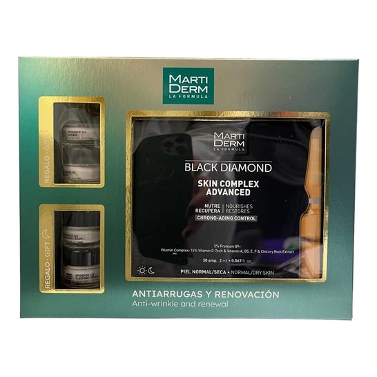 Martiderm® Black Diamond Skin Complex 30amp : AQUA. PROPYLENE GLYCOL. ASCORBIC ACID. GLYCINE MAX (SOY BEAN) SEED. PHENOXYETHANOL. POTASSIUM SORBATE. 3-O-ETHYL ASCORBIC ACID. POLYGLYCERYL-4 LAURATE. ISOHEXADECANE. PHENYL TRIMETHICONE. PANTHEOL. BUTYLENE GLYCOL. SORBITAN OLEATE. BORON NITRIDE. GLYCERYL LINOLEATE. GLYCERYL LINOLENATE. PARFUM. TOCOPHERYL ACETATE. CYCLOPENTASILOXANE. PEG/PPG-18/18 DIMETHICONE. CYCLOTETRASILOXANE. SODIUM BENZOATE. MAGNESIUM ALUMINUM SILICATE. DIMETHICONE. CYCLOHEXASILOXANE. DIMETHICONE/VINYL DIMETHICONE CROSSPO. SODIUM HYDROXIDE. CITRIC ACID. EDTA DISODIUM. SODIUM METABISULFITE. RETINYL PALMITATE. XANTHAN GUM.