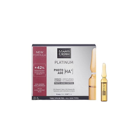 Martiderm® Photo-Age Platinum est un traitement anti-âge intensif qui prévient l'apparition des signes du photo-vieillissement et répare la peau après une exposition au soleil. Le visage apparaît plus jeune, lisse, hydraté et élastique.
