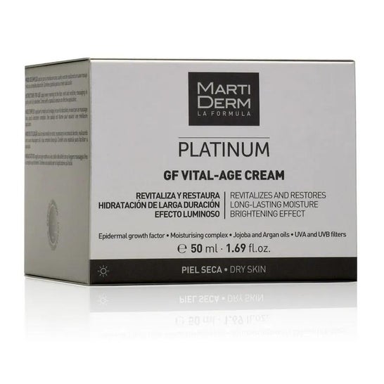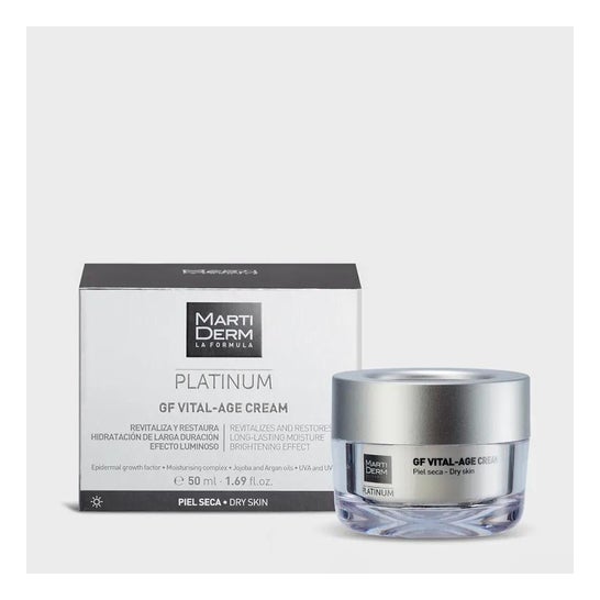 Martiderm® Platinum GF Vital-Age Cream 50ml est une crème hydratante spécialement conçue pour aider à restaurer la vitalité et l'élasticité de la peau.