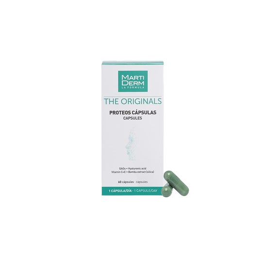 Martiderm Proteos 60caps est un complément alimentaire qui contribue à améliorer l'hydratation et la fermeté de la peau. Sa formulation à base de glycosamines d'origine marine favorise l'hydratation de la peau, en retenant l'eau dans les tissus et en maintenant la jeunesse de la peau.