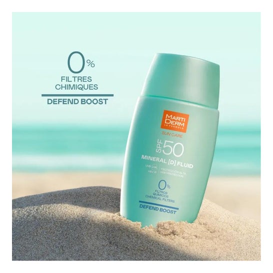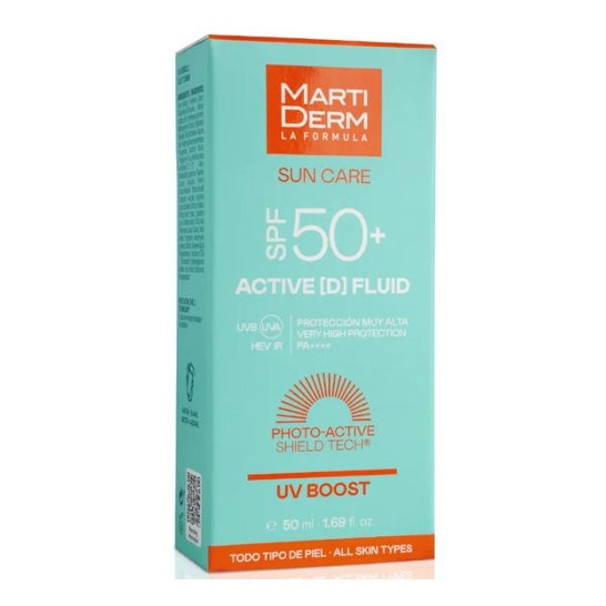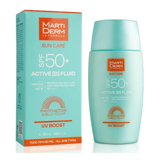 Martiderm Sun Care Active D Fluid SPF50+ 50ml est un écran solaire pour le visage qui combine un filtre solaire SPF50+ avec de l’extrait de Chicorée, un actif restructurant et hydratant. Il protège contre l’action nocive des rayonnements UVA, UVB, HEV et IR. En outre, il a une texture fluide qui facilite son application.