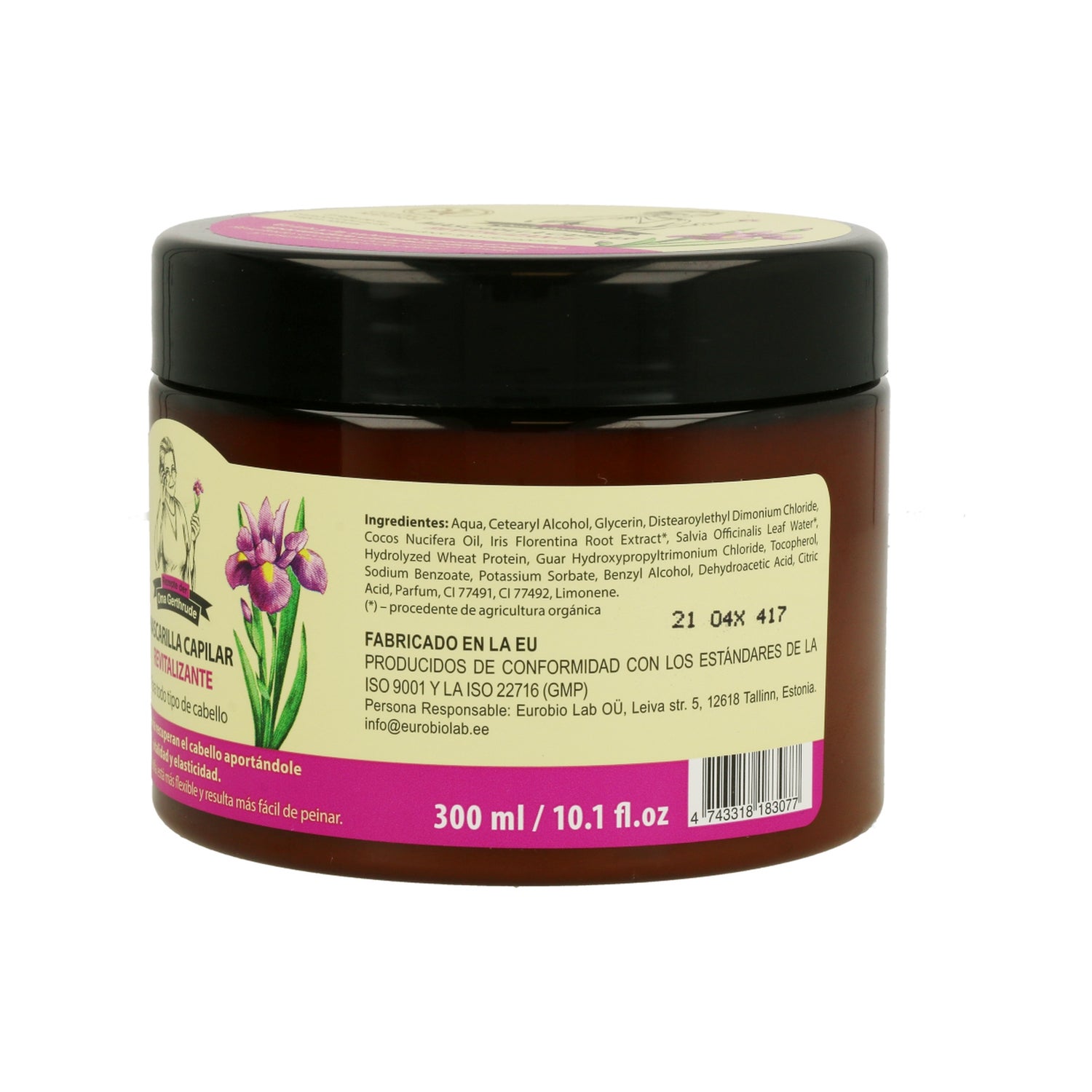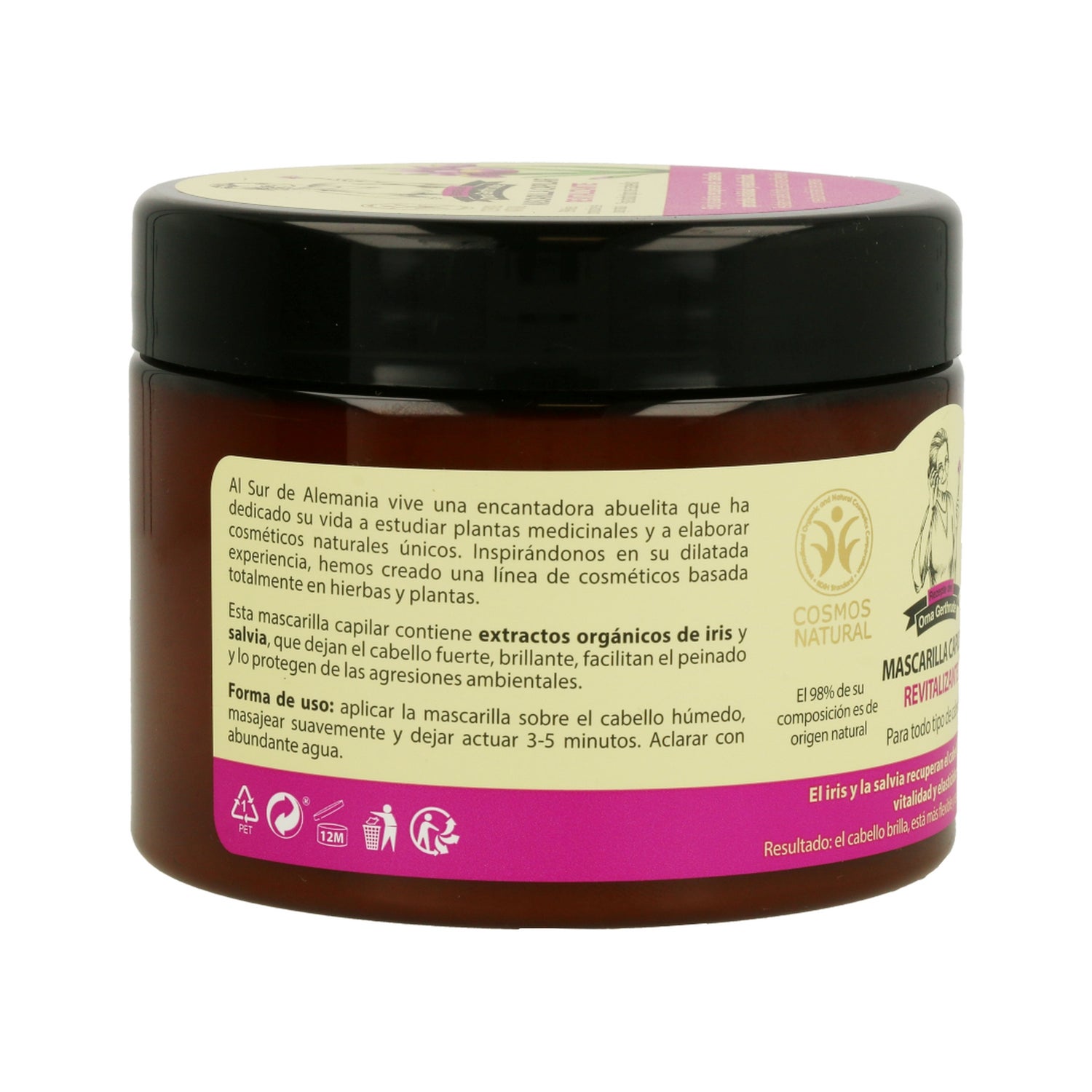 Masque capillaire force et brillance. Sa formule à base d'extrait d'iris biologique et d'extrait de sauge biologique a été créée pour réparer et nourrir les cheveux les plus exigeants, en leur donnant force et élasticité pour obtenir des cheveux plus sains, plus forts et plus brillants, en aidant à les protéger contre les agressions des éléments extérieurs grâce à l'apport de vitamines et d'acides gras qui renforcent la fibre capillaire. Sa composition a également un effet antiseptique, aidant à prévenir les démangeaisons et l'inconfort du cuir chevelu.