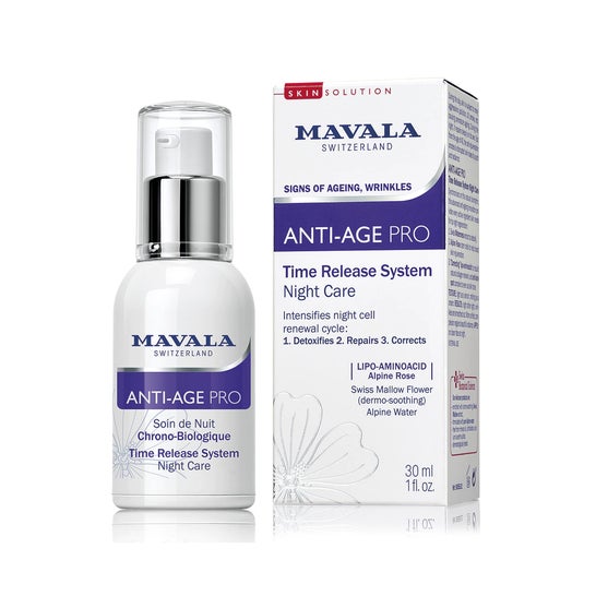 Le Soin de nuit chrono-biologique de la gamme Anti-âge Pro de Mavala, corrige tous les signes de l'âge : rides, éclat et homogénéité du teint.
