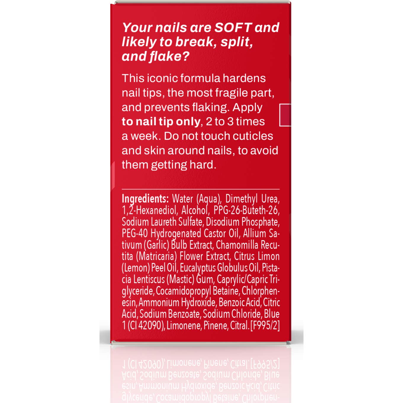 Ce produit, utile en cas d'ongles cassés ou fragiles, améliore la cohésion des fibres de kératine, permettant aux trois couches principales de l'ongle de s'unir.