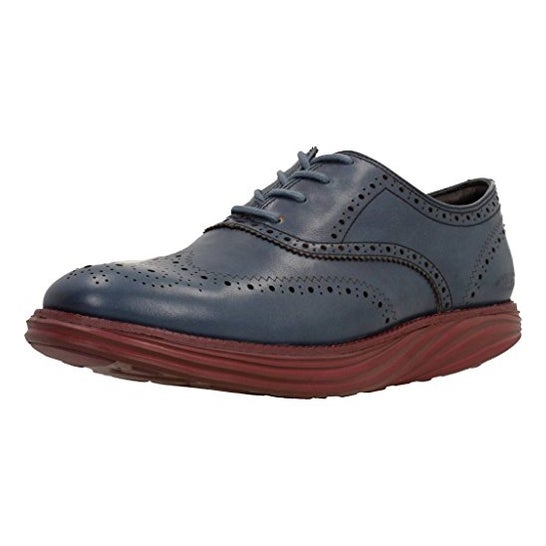 Chaussure bleu marine avec semelle marron pour homme, bout rond, avec lacets bleu marine, avec finition ajourée pour la respirabilité. Semelle en caoutchouc, offrant confort et commodité, prenant soin de l'impact quotidien et évitant les douleurs des pieds fatigués. Tissu intérieur double couche, renforçant la qualité et s'adaptant mieux au pied. Taille 45.