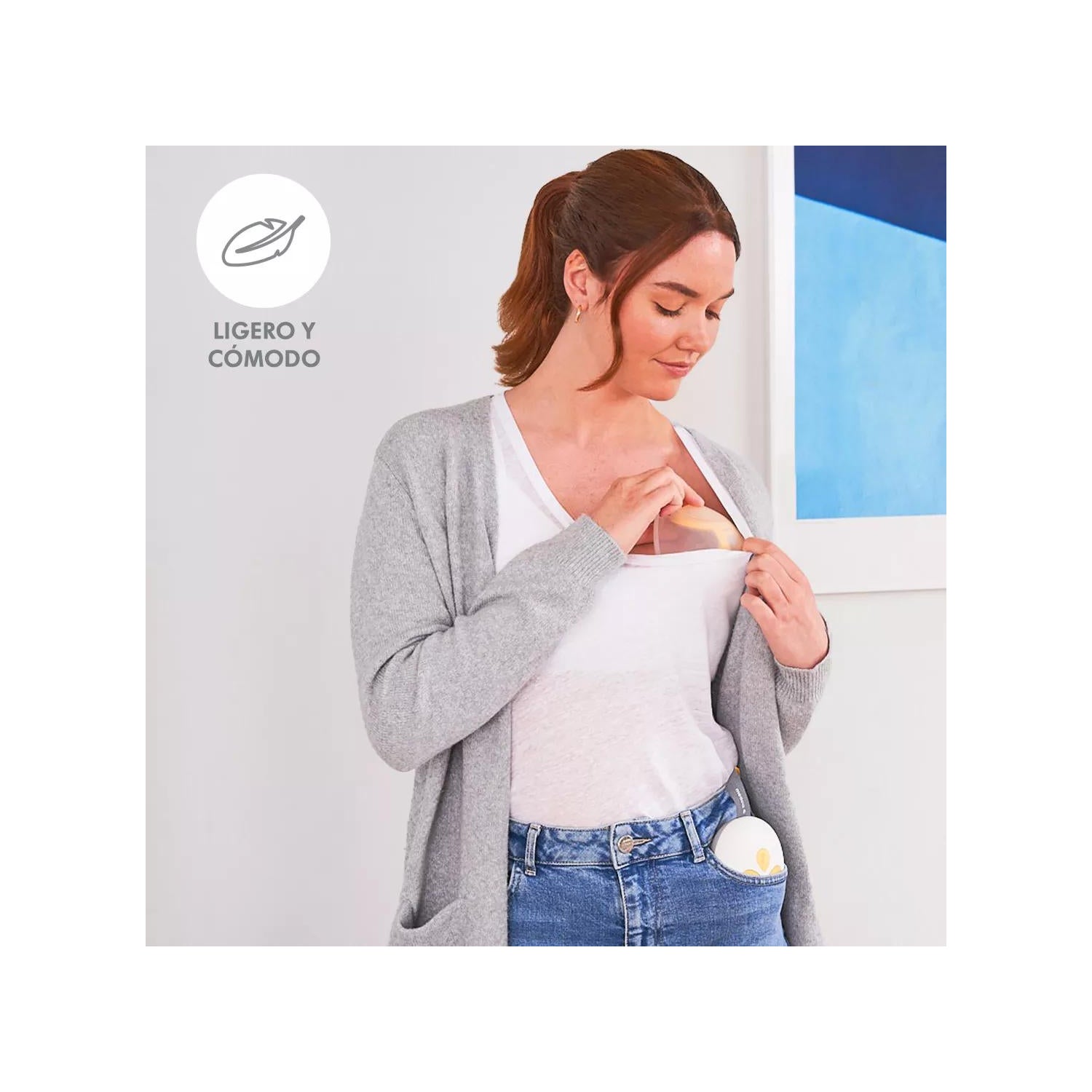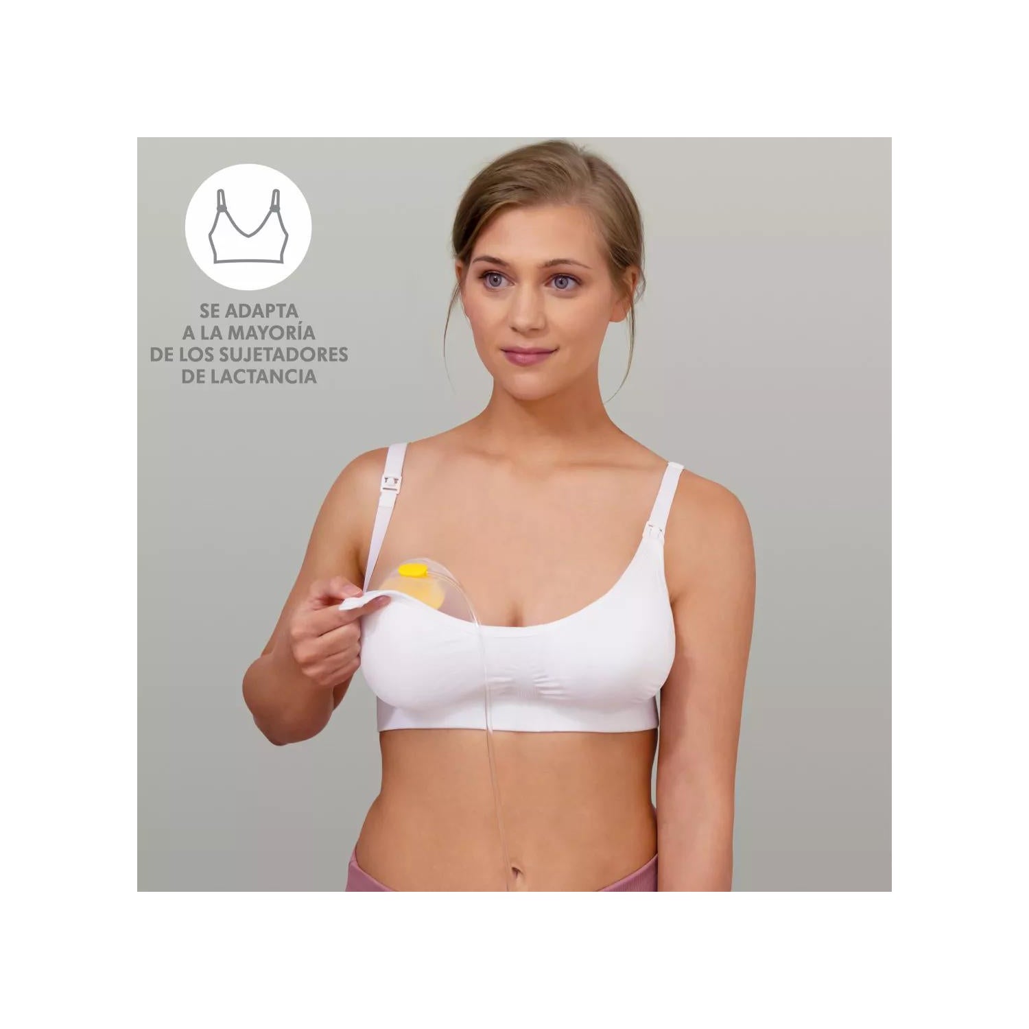 Ce dispositif comprend une coupe de collecte "sans mains" qui s'ajuste anatomiquement à la forme du sein, favorisant une extraction efficace et confortable. Sa légèreté, avec un poids de seulement 76 grammes par coupe, permet qu'il soit discret et confortable à porter, même sous les vêtements. De plus, son design ultraléger contribue à la mobilité de l'utilisateur en cas de besoin.