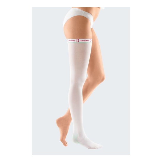 Le tissu anatomique et respirant des bas fournit une compression constante de 18 mmHg à la cheville, qui diminue progressivement vers la cuisse. Cela favorise le retour veineux et réduit la formation de caillots.