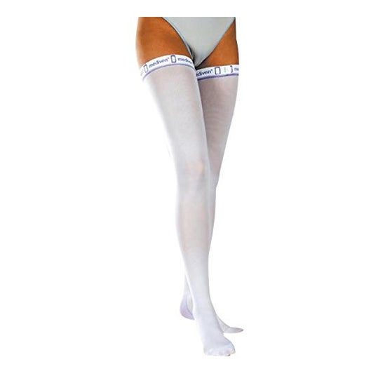 La Media Medi-thrombexin 18 Lar Bl T- de MEDIVEN est spécialement conçue pour la prophylaxie de la thrombose chez les patients immobilisés, son application principale étant dans les hôpitaux. Elle offre une compression clinique de 18 mmHg et un tissu anatomique qui favorise le retour veineux et réduit le risque de caillots sanguins. Elle est sûre et confortable tant en préopératoire qu'en postopératoire pour les personnes à mobilité réduite.