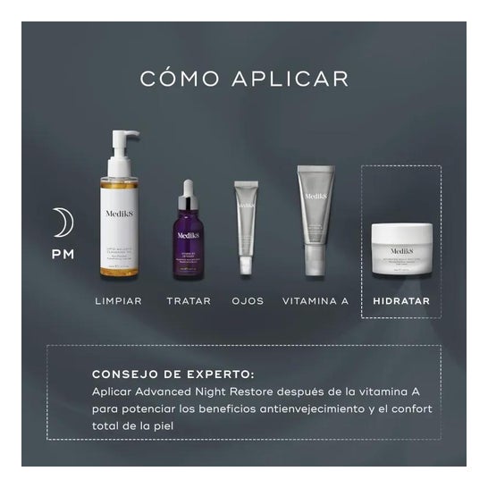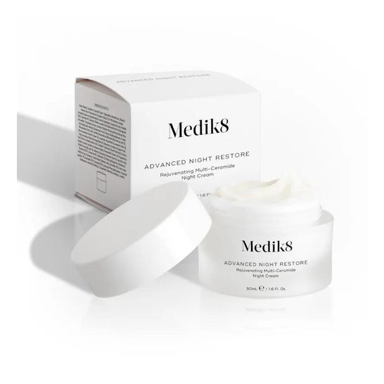 Medik8 Advanced Night Restore 50ml est une crème de nuit pour le visage qui aide à hydrater la peau et à la raffermir, améliorant son élasticité.