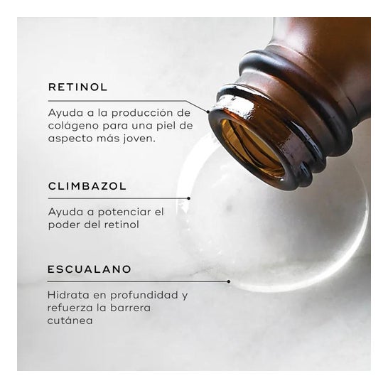 Sérum léger et hydratant à base de vitamine A et de squalane, renforcé par du climbazole, un booster de rétinol. Aide le teint à paraître plus jeune, plus lumineux, plus lisse et plus ferme. Sa formule permet au rétinol d'être délivré progressivement à la peau pour favoriser le confort cutané, éviter d'éventuelles irritations et prolonger ses effets pendant la nuit.