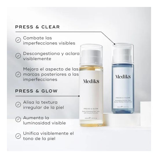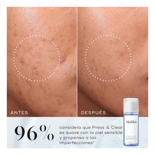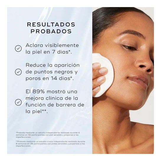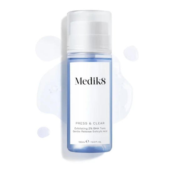 Medik8 Press & Clear 150ml est une lotion légère qui aide à prévenir et à réduire l'apparence des points noirs. Il permet également de limiter l'accumulation de sébum sur la peau du visage. Sa formulation est enrichie de 2 % d'acide salicylique encapsulé, qui aide à nettoyer les pores et à combattre les bactéries responsables des boutons. En outre, il contient également de l'extrait de saké, qui contribue à renforcer la barrière naturelle de la peau, et de l'aloe vera, un agent émollient qui aide à maintenir l'hydratation de la peau.