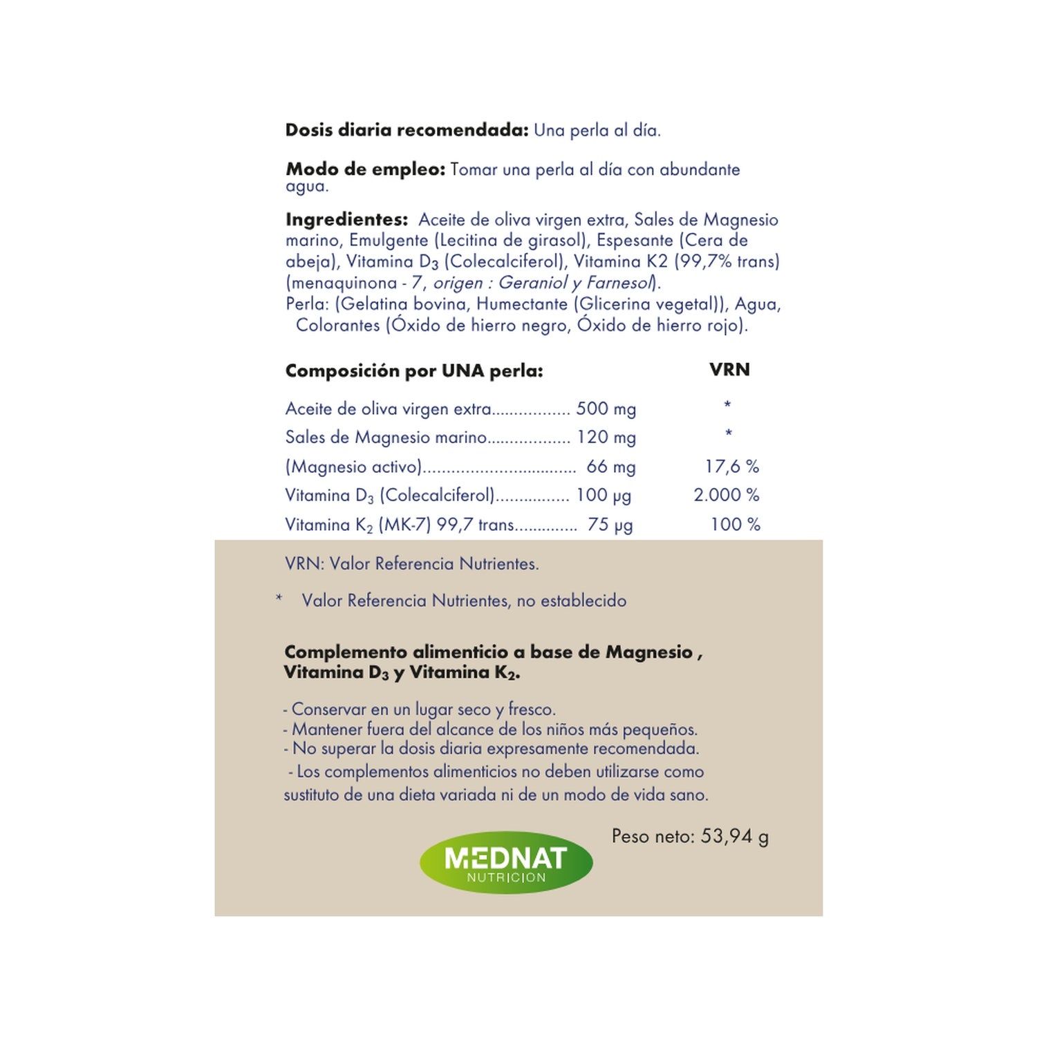 Mednat Vitamine D3+K2+Mg 60 Perles est un complément alimentaire élaboré à base d'une combinaison de vitamines D et K et de magnésium.