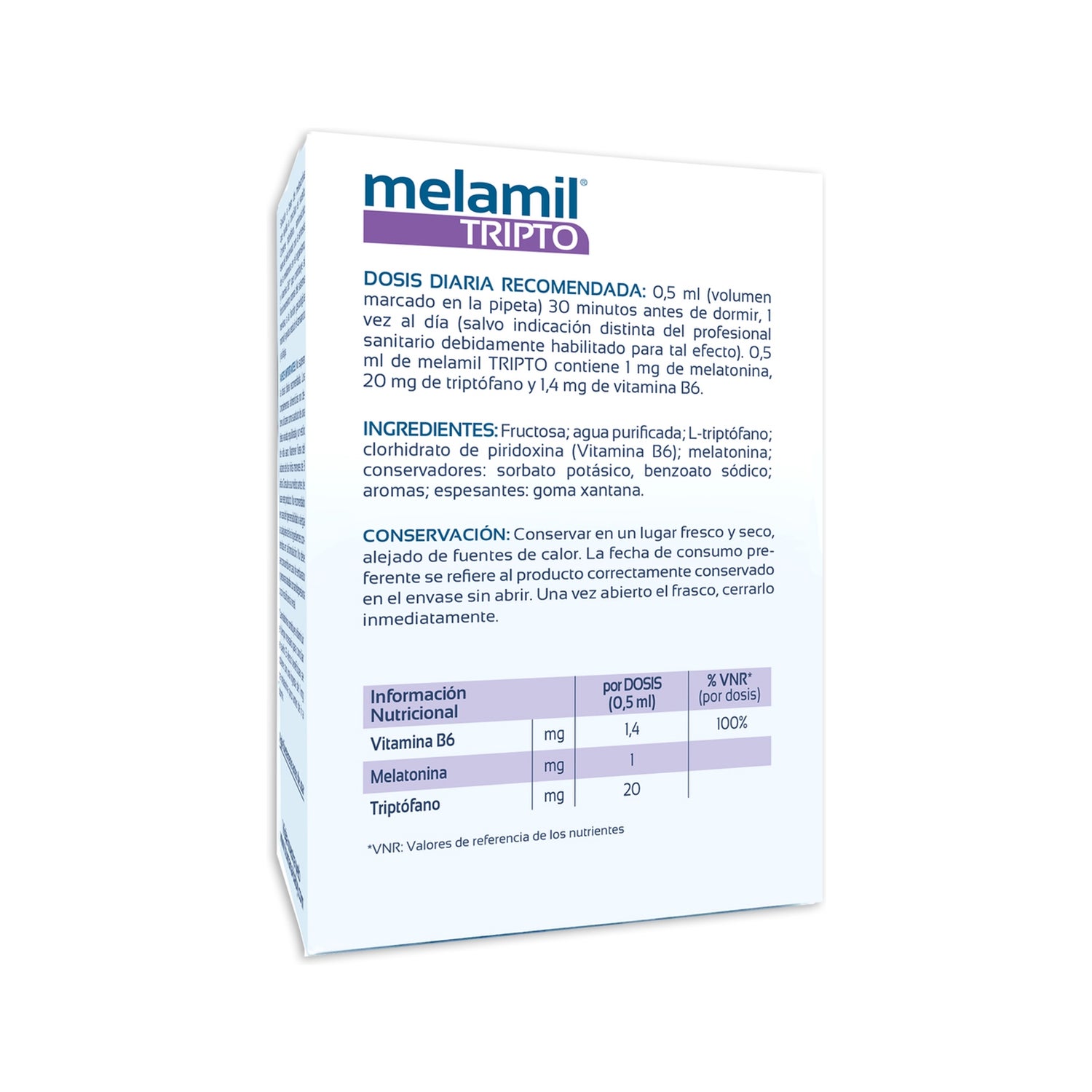 Ses ingrédients sont des composés naturellement présents dans le corps, donc il est totalement sûr. La mélatonine est l'hormone qui régule le cycle du sommeil et le tryptophane contribue au fonctionnement normal du système nerveux et stimule la production de mélatonine. Il contient une pipette doseuse pour faciliter l'ingestion.