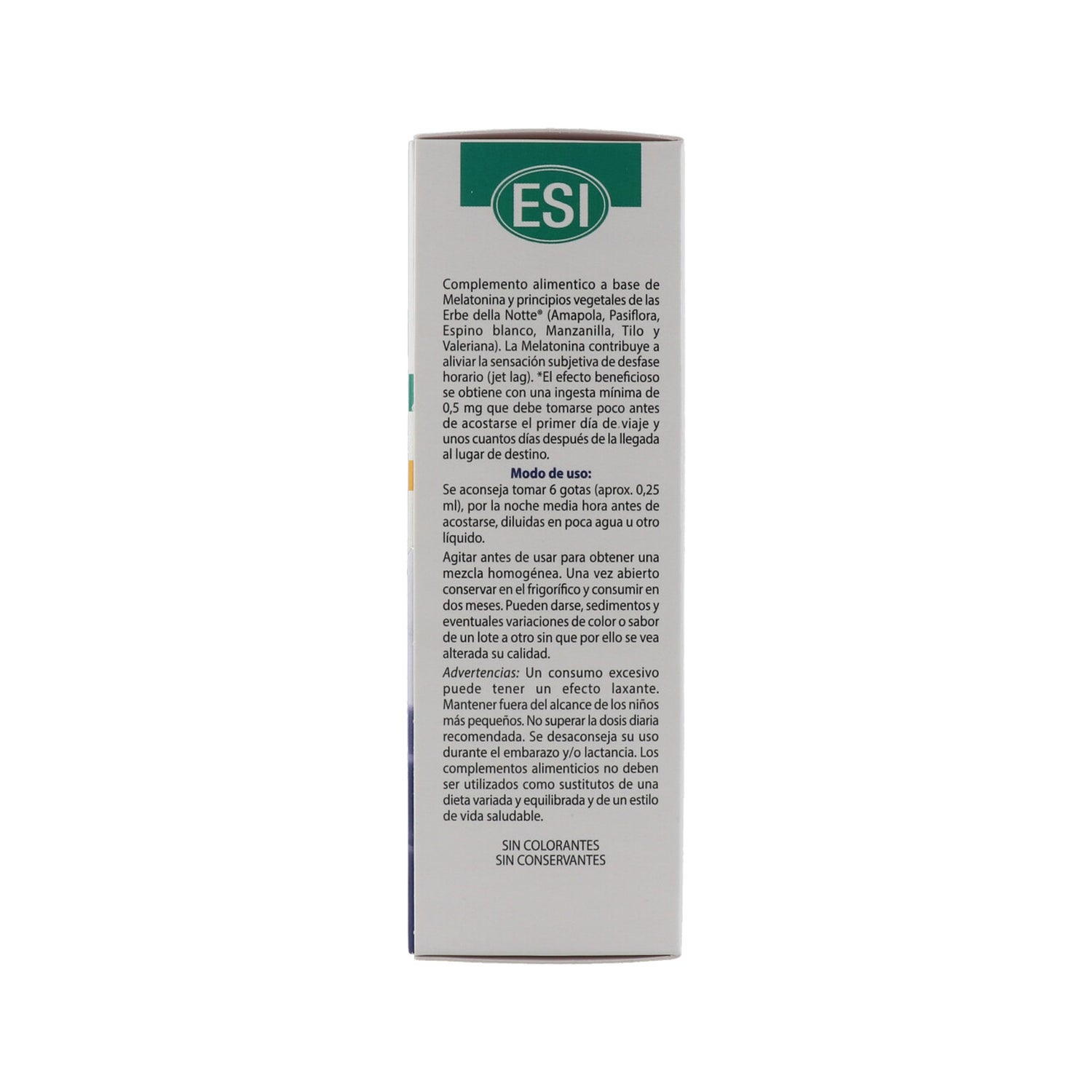 Complément alimentaire à base d'ingrédients naturels qui favorisent l'endormissement. Formulé avec de la mélatonine, du coquelicot, de la passiflore, de l'aubépine, de la camomille, du tilleul et de la valériane, qui contribuent à améliorer le repos nocturne. Il aide également à soulager la sensation de décalage horaire. Il favorise également le fonctionnement normal du système nerveux. Présenté dans un flacon en verre avec compte-gouttes. Sans alcool, sans gluten, sans dérivés laitiers, sans lactose, sans conservateurs ajoutés et sans colorants artificiels.